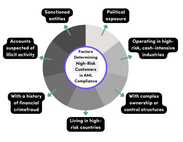 Examples: Transactions with high-risk jurisdictions or unexplained wealth that are inconsistent with declared income.
